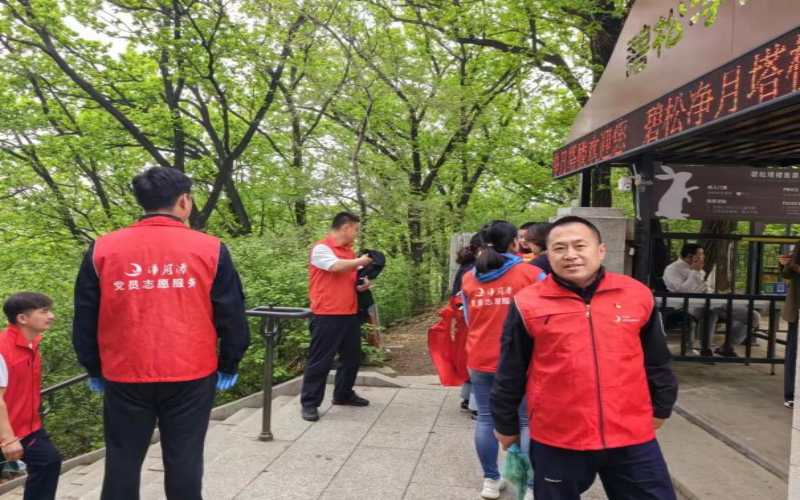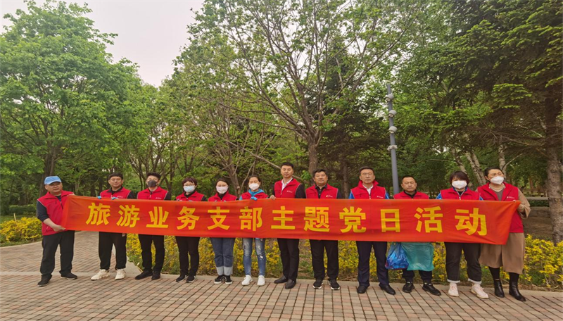为了大力弘扬景区生态文明建设,激发广大党员爱国爱企的热情,2023年5月16日旅游业务党支部开展了“传承红色基因 共创生态净月”的主题党日活动。上午8时,支部全体党员以徒步的形式沿着环潭路向着本次活动的目的地-塔楼出发,并对沿途游客遗留的烟头、垃圾等进行了清理。登上碧松净月塔楼后,党员们敲响了太平钟,祈福国泰民安,祈福景区平安、好运。太平钟楼是全国唯一的一座森林防火钟楼,是为纪念吉林省1981—1990连续十年没有重大森林火灾而修建的。楼高17米,钟高2.5米,直径1.8米,重3.3吨。钟声响起,震荡全潭,可绵延数十里。黑色玄武岩地面镌有吉林省地图,象征着吉林人民热爱黑士地的一草一木,为家、为国安定太平、繁荣昌盛祈福。汉白玉浮雕凸显净月森林的美丽壮观,彰显生态第一的发展理念。