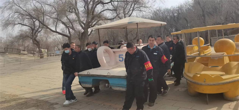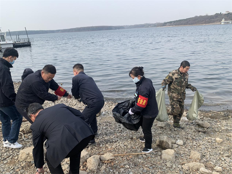 为深入学习宣传二十大会议精神,深刻感悟生态卫生文明发展,激发党员同志的奉献精神,4月10日上午9点整,营销运营党支部开展了“共建文明,党员先行”主题党日活动。活动共两项内容,一是对净月潭园区内环潭公路外山坡枯枝枯叶进行清洁,二是清洁游船及帮助游船入水活动。