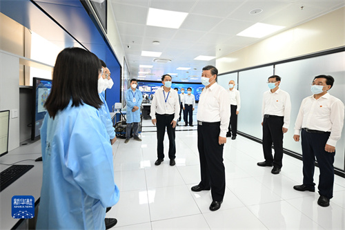 7月5日至7日,中共中央总书记、国家主席、中央军委主席习近平在江苏考察。这是6日下午,习近平在南京市考察紫金山实验室时,同科研人员亲切交流。新华社记者 谢环驰 摄