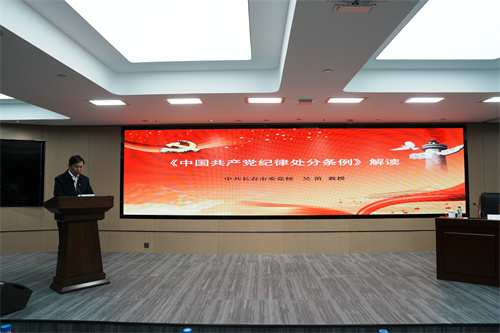 5月8日,BEATS365官网党委举办党纪教育学习专题党课,邀请长春市委党校经济学教研部吴笛教授为集团全体党员授课,重点解读新修订版《中国共产党纪律处分条例》(以下简称条例)。集团班子成员、各部门党员、各子公司班子成员及相关党员参加了本次活动。集团党委副书记高军主持本次授课。